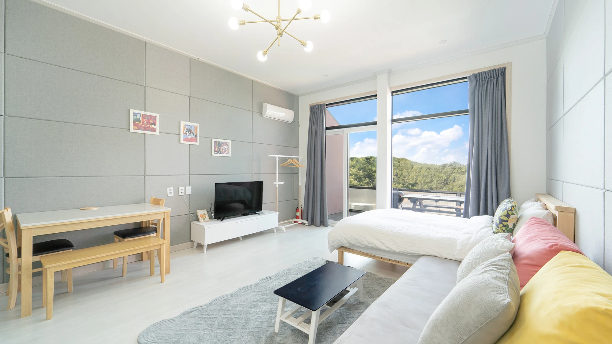 - 집기품목 : TV, 냉장고, 에어컨, 인덕션, 취사시설/도구, 샴푸, 린스, 바디워시, 비누, 타월, 드라이기, 와이파이, 금연, 개별바비큐, 테라스, 욕실용품, 전자레인지, 바다전망