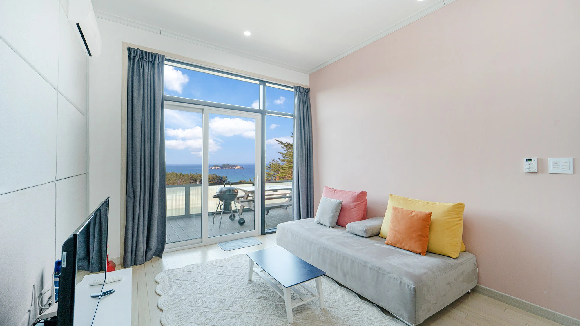 - 집기품목 : TV, 냉장고, 에어컨, 인덕션, 취사시설/도구, 샴푸, 린스, 바디워시, 비누, 타월, 드라이기, 와이파이, 금연, 개별바비큐, 테라스, 욕실용품, 전자레인지, 바다전망