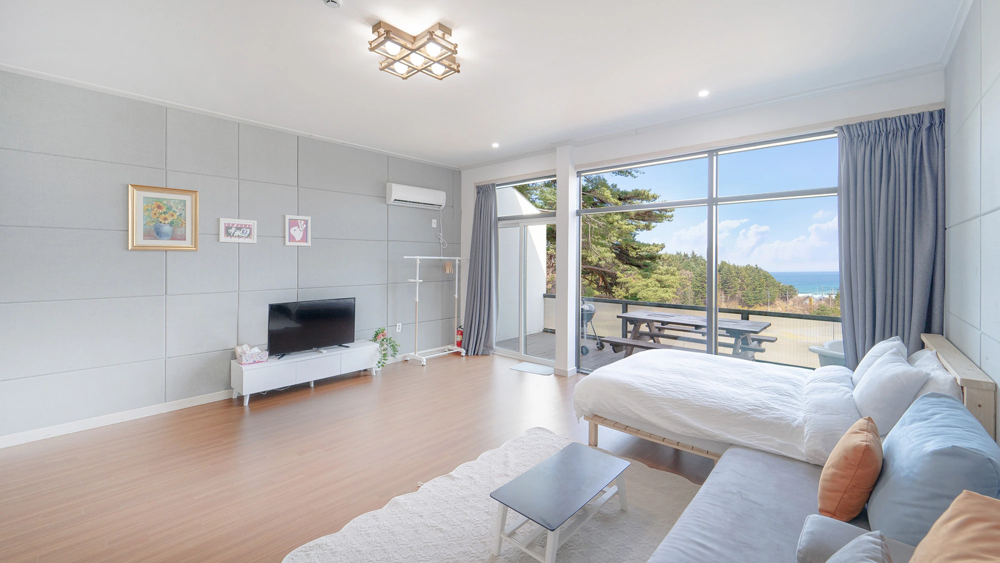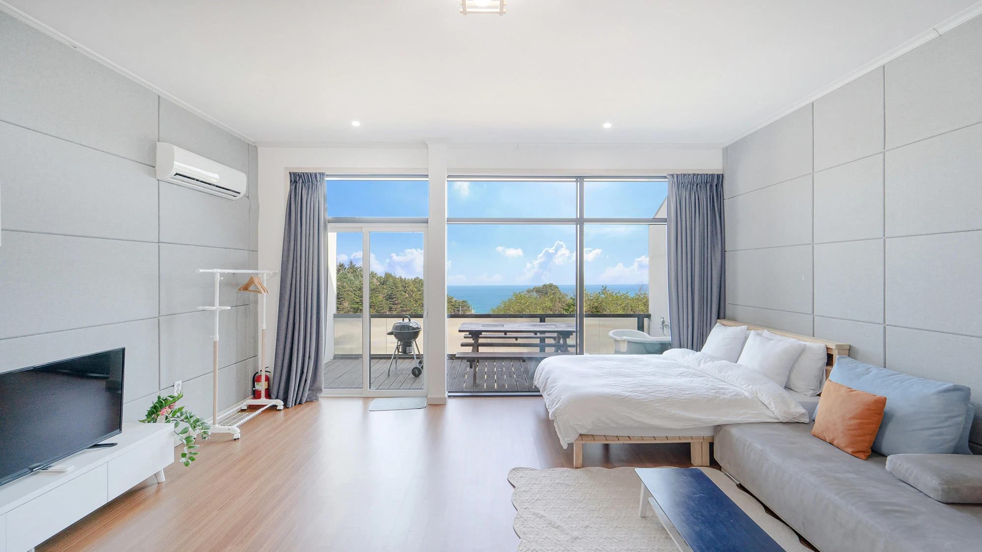 - 집기품목 : TV, 냉장고, 에어컨, 인덕션, 취사시설/도구, 샴푸, 린스, 바디워시, 비누, 타월, 드라이기, 와이파이, 금연, 개별바비큐, 테라스, 욕실용품, 전자레인지, 바다전망